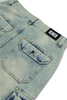 Pantalón baggy cargo con 4 bolsillo 2 laterales y 2 cargo, tableros en delanteros y basta. Hecho de denim 100% Cotton, tejido customizado y prelavado.