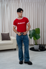 - Efectos de arrugas y desgaste marcados en muslos y parte inferior frontal.