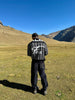 • Diseño de runas e isotipos: El tejido tiene patrones de runas (símbolos antiguos) y un isotipo (un tipo de logo sin texto) mezclados entre sí, dándole un toque único.